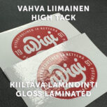 Kiiltävä muovitarra + suojalaminointi