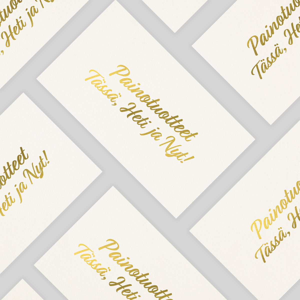 Toimitamme käyntikortit laatikoittain. Foliovärit: Kulta, hopea, kupari, punainen. Voit myös kysyä muita foliovaihtoehtoja.