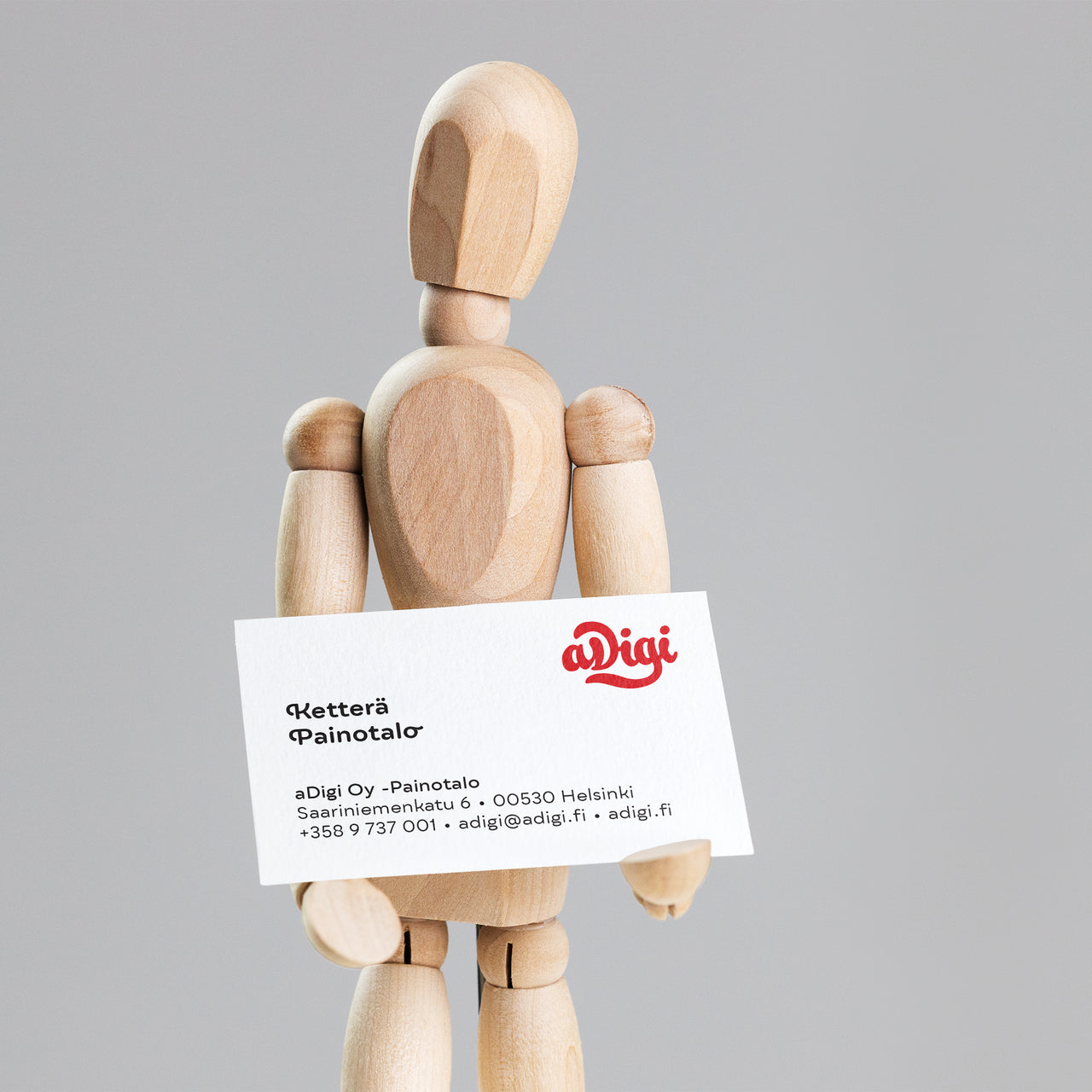 aDigin pikakäyntikorttipalvelu yhdistää salamannopeuden ja ylivertaisen laadun. Saat käteesi tyylikkäät, ammattimaiset käyntikortit, jotka jättävät lähtemättömän vaikutuksen – ja kaikki tämä vain vuorokauden sisällä tilauksesta!