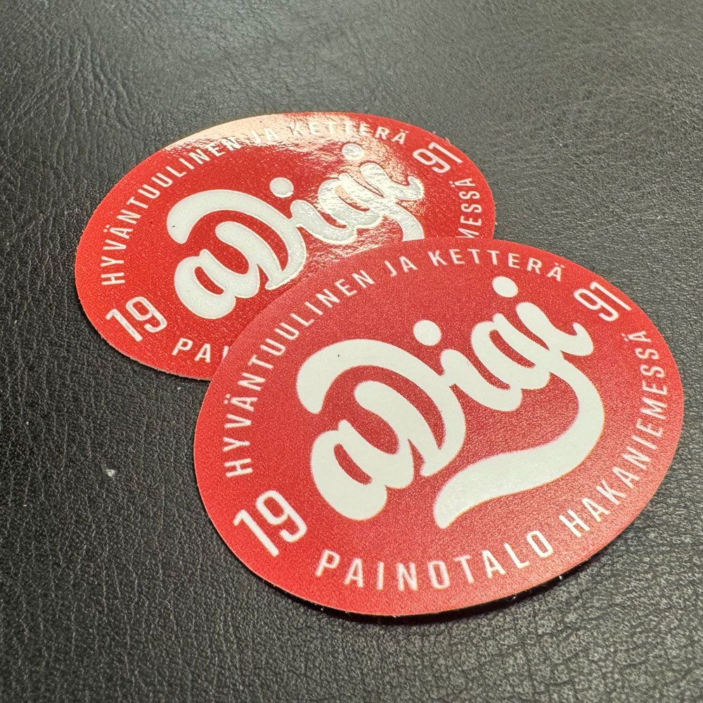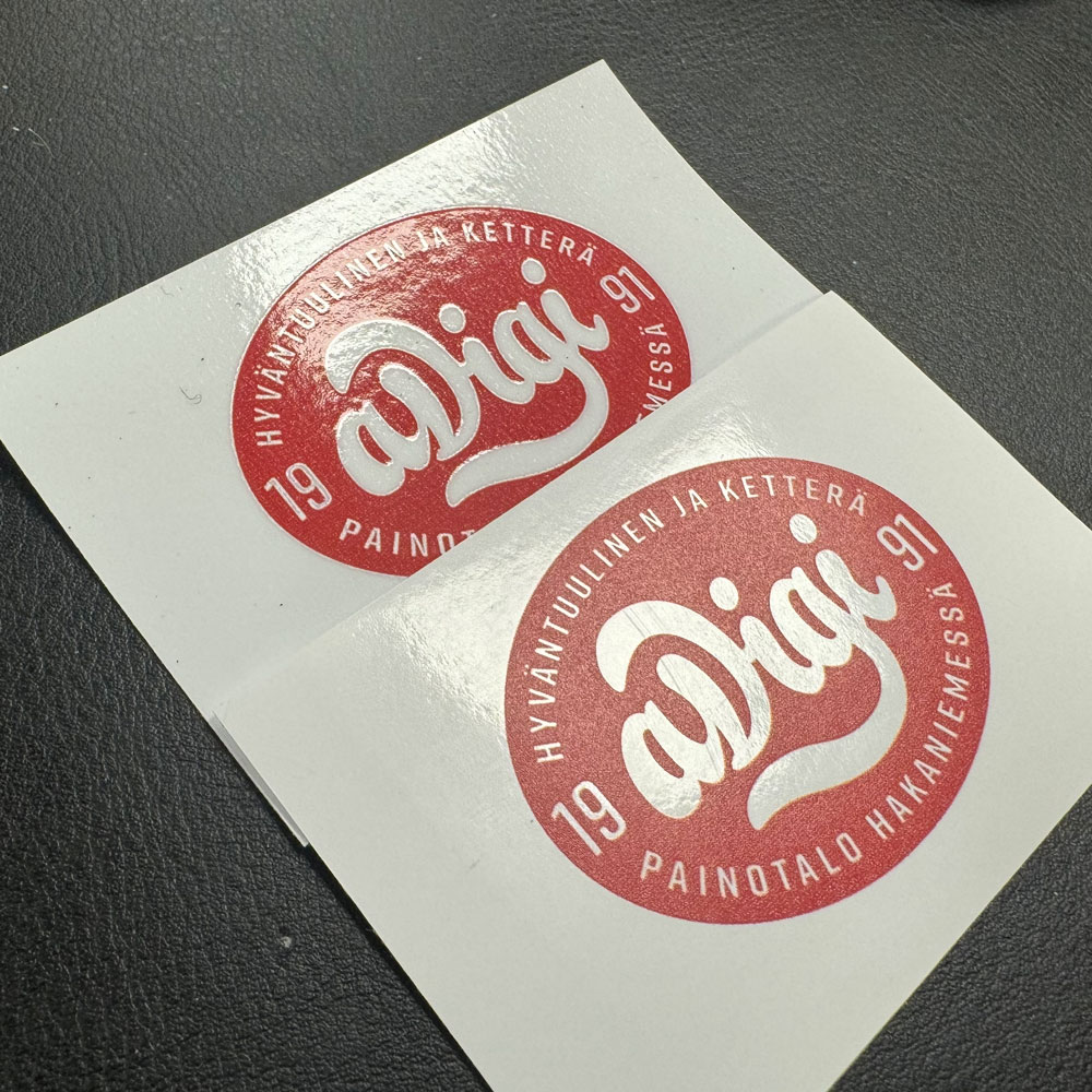 Läpinäkyvät tarrat saat haluamassasi koossa. Verkkokauppaamme on merkitty jonkin verran yleisimpiä kokoja ja mikäli et löydä sieltä tarvitsemaasi, pyydä erillistä tarjousta yhteydenottolomakkeemme kautta tai sähköpostitse adigi@adigi.fi.