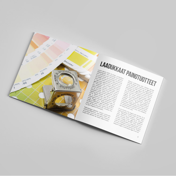 Lehtiimme on oletuksena saatavilla puolikiiltävä sileä paperi sekä perinteinen mattapaperi. Mikäli tarvitset erikoisempaa materiaalia lehtiisi, ota meihin yhteyttä, niin etsitään yhdessä parhaiten juuri teille sopiva paperilaatu.