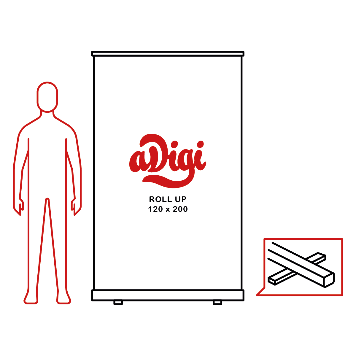 aDigin Roll-up, eli kotoisammin rullajuliste toistaa värit elävinä ja kirkkaina. Saat roll-upit meiltä nopeasti, tavallisesti 1-2 päivässä, mutta tarvittaessa jopa samana päivänä tilauksesta.