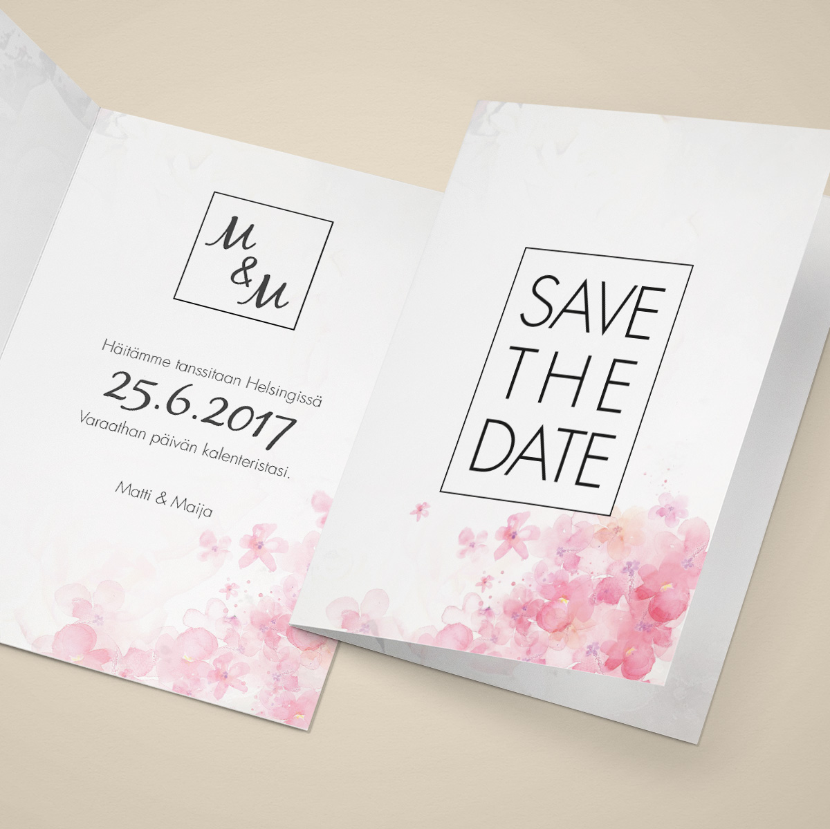 Teemme myös muun kokoisia Save the Date -kortteja tarvittaessa. Mikäli korttisi koko poikkeaa standardimitoista, suosittelemme pyytämään erillisen hintatarjouksen esimerkiksi sähköpostilla tai yhteydenottolomakkeellamme.