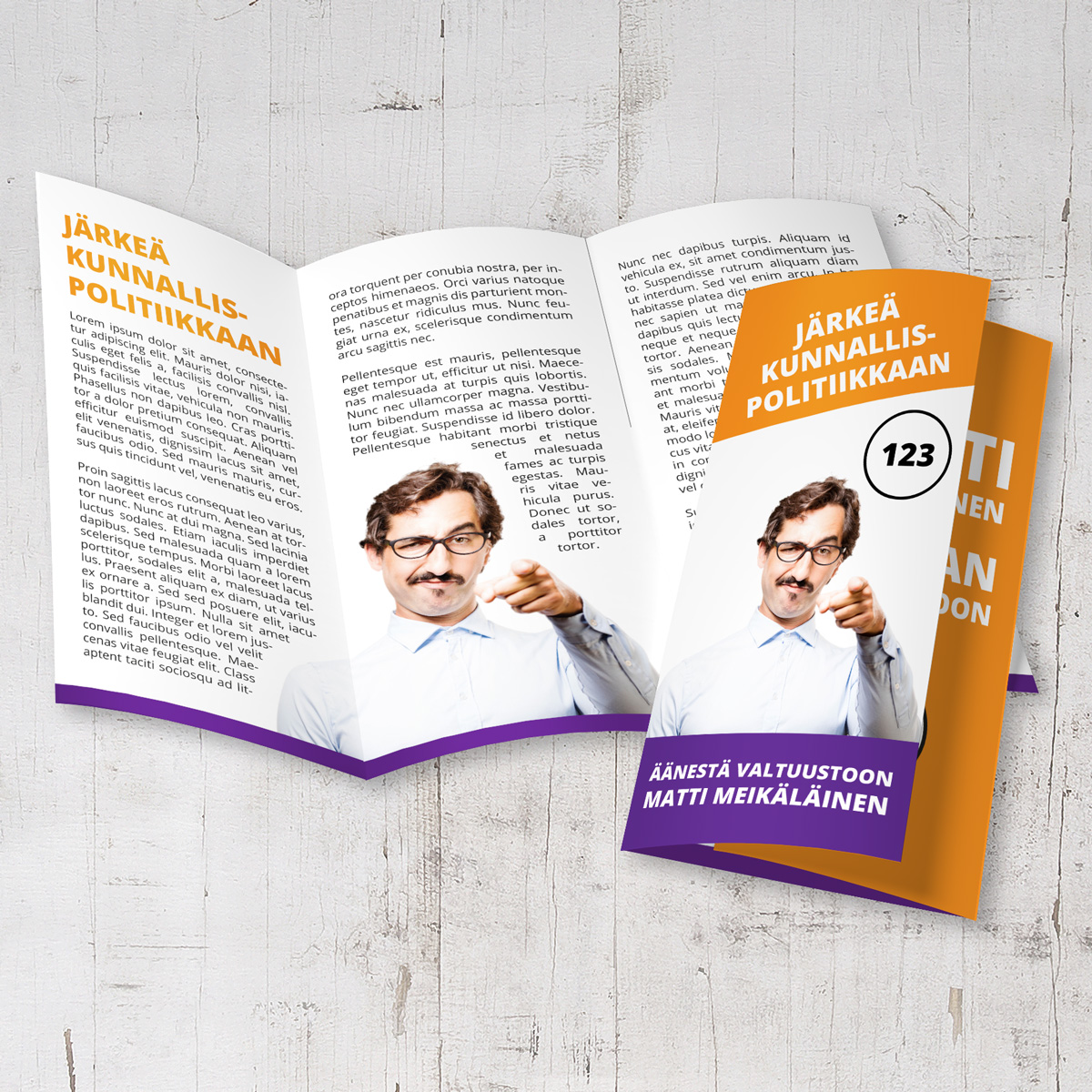 Taitetuilla esitteillämme saat jaettua äänestäjille näppärän infopaketin vaaliteemoistasi.